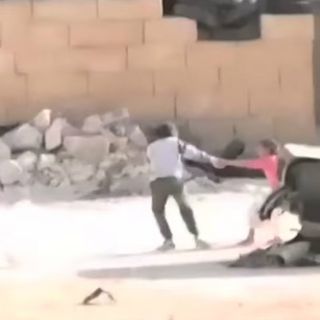 Siria para salvar a una niña que se encontraba asustada detrás de un auto.