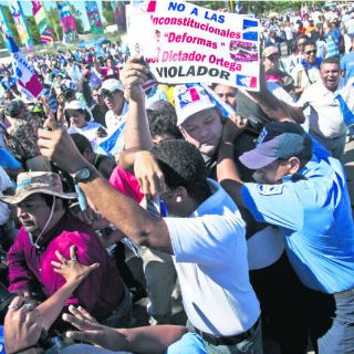 Los manifestantes, con banderas de Nicaragua, pancartas y carteles con mensajes contra Ortega, salieron desde la rotonda bautizada “Hugo Chávez” en homenaje al desaparecido presidente venezolano, hasta llegar a la Asamblea Nacional, que estaba protegida por vallas de seguridad de la policía. Allí hubo forcejeos con los agentes pero sin mayores consecuencias.