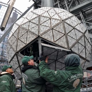 Unos dos mil 688 triángulos de cristal Waterford conforman la esfera de Times Square, que será elevada 144 metros por encima de este representativo lugar de Nueva York.