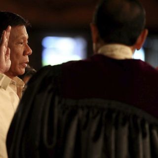 El ex alcalde de Davao, cuya vida privada también es controvertida, está acusado de adulterio, tomó el juramento en una sencilla ceremonia celebrada en el palacio de Malacañang, en Manila, después de ganar las elecciones presidenciales celebradas el 9 de mayo.