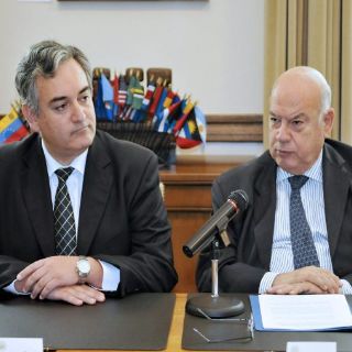 OEA), José Miguel Insulza, y el representante permanente de Chile ante el organismo, Darío Paya Mira, participan en Washington D.C. (Estados Unidos) hoy, lunes 18 de octubre 2010, en la firma del acuerdo por el que Santiago, capital chilena, será la sede de la reunión de expertos en preparación de la
