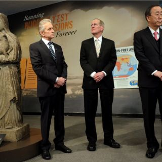 "Espero que cuando la gente visite la ONU y vea esta exposición, decida agregar su nombre a la abolición de las armas nucleares", agregó el protagonista de "Wall Street" y "El síndrome de China".