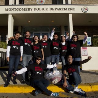 Las autoridades de Montgomery liberaron el jueves por la noche a las 13 personas que fueron detenidas durante una protesta contra la dura ley de inmigración de Alabama. Salieron por la puerta principal del Departamento de Policía de Montgomery mientras gritaban “sin papeles, sin miedo”.