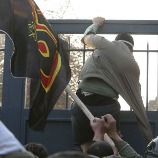 Decenas de estudiantes iraníes irrumpieron este martes en la embajada británica en Teherán, donde rompieron ventanas y quemaron la bandera de Reino Unido, en protesta por las sanciones impuestas por Londres a Irán por su programa nuclear.