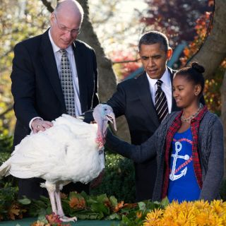 Acompañado por sus dos hijas, Sasha y Malia, el presidente estableció durante su discurso un divertido paralelismo entre la elección de Cobbler frente al otro pavo, Gobbler, y su reelección en las urnas el pasado seis de noviembre frente al republicano Mitt Romney.