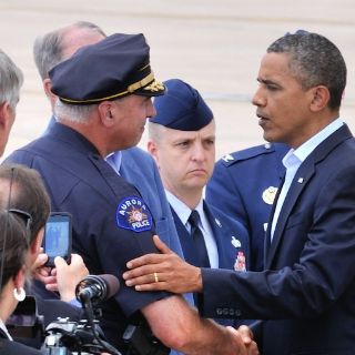 BASE AEREA DE BUCKLEY, EU, (22/JUL/2012).- El presidente estadounidense Barack Obama llegó a Colorado este domingo para reunirse con familiares de las víctimas de la masacre en un cine de la ciudad de Aurora.
