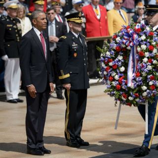 Barack Obama depositó una ofrenda floral en la Tumba del Soldado Desconocido en recuerdo de los miembros de las fuerzas armadas caídos en servicio del país.