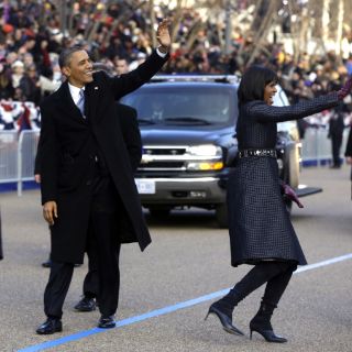 WASHINGTON, ESTADOS UNIDOS (21/ENE/2013).- El sol se abrió paso entre las nubes en el desfile de investidura de Barack Obama, quien se dio un baño de multitudes en su camino a la Casa Blanca, junto a su esposa, Michelle, tras jurar hoy como presidente de Estados Unidos por segunda vez.