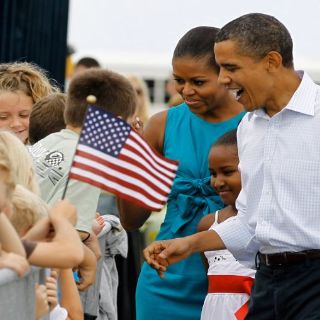 El presidente, la primera dama, su hija Sasha y el perro familiar Bo llegaron el estado de la Florida para una visita de fin de semana caracterizada en parte como vacaciones familiares y en parte promoción presidencial. Su otra hija Malia está en un campamento de verano.