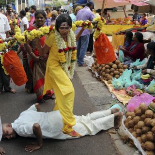 Señaló que decenas de miles de personas participaban en el festival, con un mes de duración, en el templo de Shiva, el destructor, una de las deidades principales del hinduismo.