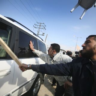 Palestinos arrojan piedras y zapatos contra un convoy de la ONU