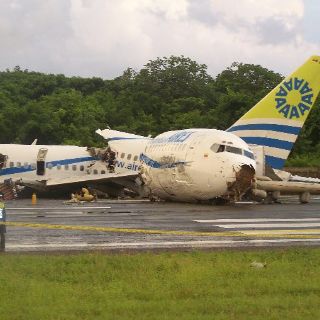 BOGOTÁ, COLOMBIA (16/AGO/2010).- Al menos una persona murió y más de 120 resultaron heridas en un accidente de un avión de la aerolínea Aires, con 131 pasajeros, que fue impactado por un rayo y se partió en pedazos al aterrizar en la isla San Andrés, informaron el lunes la policía y Aeronáutica Civil.