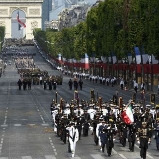 Fueron 147 miembros de las escuelas militares de los ejércitos de Tierra, de la Marina y del Aire de México, acompañados de seis águilas imperiales, los que poco antes de las 11.00 locales (9.00 GMT) abrieron el desfile, en el que intervinieron en total 3.500 soldados que descendieron a pie la avenida de los Campos Elíseos, además de los aviones y helicópteros que les habían precedido.