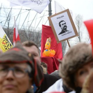 "Venimos aquí para defender el símbolo de la historia polaca contra el odio", dijo a los reunidos el líder del partido de oposición Plataforma Cívica, Grzegorz Schetyna.