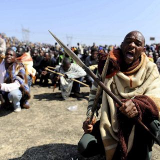 Algunos mineros se retiraron del lugar, aunque otros, que portaban armas, comenzaron a entonar cánticos de guerra y pronto emprendieron una marcha hacia el poblado cercano a la mina, dijo el periodista Molaole Montsho.