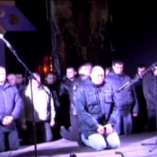 El acto de constricción pública tuvo lugar anoche en un mitin en la plaza junto al monumento al poeta Tarás Shevchenko, convertida en el centro de las protestas europeístas en Lvov, baluarte de los nacionalistas ucranianos.