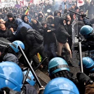 Policías reprimen protesta en Italia con gas lacrimógeno