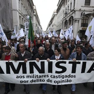 LISBOA, PORTUGAL (12/NOV/2011).- Varios miles de empleados públicos y militares realizaron este sábado en Lisboa una manifestación contra las medidas de austeridad anunciadas por el gobierno de centro-derecha, confirmando un aumento de la tensión social en Portugal.