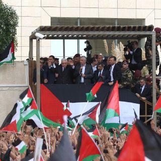 Miles de personas se congregaron frente a las oficinas de Abbas en la ciudad de Ramalá para ver al presidente de 76 años a su regreso de Nueva York. Abbas se mostró inusualmente animado, saludando a la concurrencia.