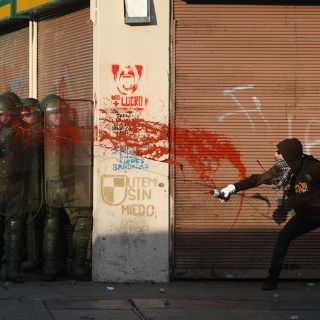 El tono pacífico cambió casi al final, cuando encapuchados se enfrentaron con piedras y palos con agentes policiales sobre el céntrico Paseo Bulnes, a escasos metros de la casa de Gobierno. Antes, encapuchados arremetieron contra semáforos y señales de tránsito. Al menos dos autos fueron incendiados y los inconformes levantaron barricadas en varios puntos de la ciudad.