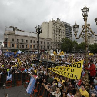 El poder de convocatoria de la movilización, que fue protagonizada por trabajadores bancarios que realizaron una jornada nacional de lucha, contrastó con las decenas de simpatizantes macristas que se acercaron hasta las puertas del Parlamento para apoyar al mandatario.