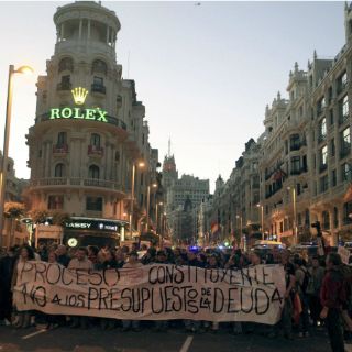 MADRID, ESPAÑA (27/OCT/2012).- Miles de personas han salido a las calles del centro de Madrid para protestar contra los Presupuestos Generales del Estado elaborados por el gobierno español para el próximo año, uno de los más austeros de la actual democracia.