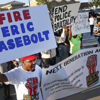 apunto su arma hacia otros jóvenes durante el fin de semana. Quienes se manifestaron llevaban consigo pancartas con las frases, "Mi color de piel no es un crimen" y "Despidan a Eric Casebolt".