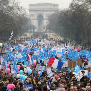 "Han hablado de ponerlos en los documentos de identidad como Padre 1, Padre 2, Padre 3, Padre 4. Mamá, papá y niños serán borrados del mapa y eso sería malo para cualquier país del mundo, cualquier civilización", dijo Melissa Michel, una madre franco-estadounidense de cinco que está entre el grupo que llegó en un tren reservado especialmente para ir a la protesta desde el sur de Francia.