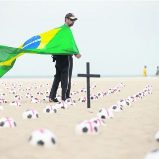 La organización no gubernamental Río de Paz, que lucha contra la violencia en Río de Janeiro se unió a las protestas que sacuden desde la semana pasada a todo Brasil por mejores servicios públicos con la exhibición de 500 balones pintados con cruces en Copacabana, una de las playas más famosas de Brasil. Pintados con cruces rojas representan las 500 mil personas asesinadas en los últimos 10 años en Brasil, según la ONG, que se caracteriza por este tipo de inusitadas y llamativas protestas.