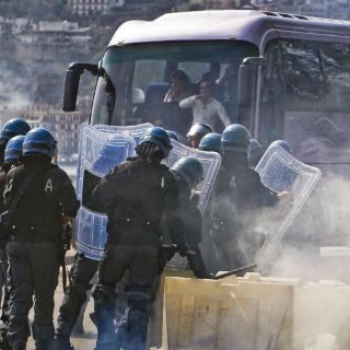 Según la policía, más de dos mil personas participaron en una marcha contra Renzi y su gobierno que degeneró en enfrentamientos en el malecón de la ciudad portuaria.
