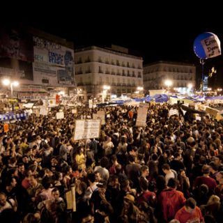 En la Puerta del Sol de Madrid, y por quinta noche consecutiva, miles de personas recibieron las campanadas de las cero horas de este domingo con un aplauso, a la vez que se convocó a una Asamblea General para decidir si la movilización se mantiene luego de los comicios.