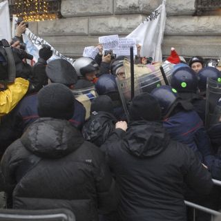 Estudiantes se manifestaron afuera de La Scala en contra de la Reforma Universitaria propuestos por Berlusconi, provocando la reacción de la policía