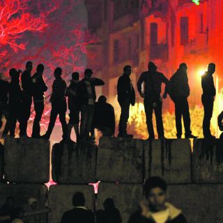 En las calles que conectan la Plaza Tahrir con el Ministerio del Interior, la Policía disparaba gases lacrimógenos para tratar de dispersar a la multitud, mientras los manifestantes les lanzan piedras.