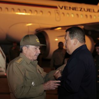 LA HABANA, CUBA (25/MAR/2012).- El presidente Raúl Castro recibió a su colega venezolano Hugo Chávez, que llegó a Cuba para someterse a tratamiento de radioterapia un mes después de haberse sometido a una cirugía quirúrgica para extirparle un tumor canceroso.