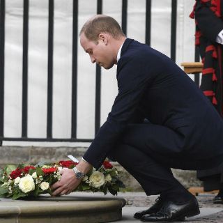 Guillermo colocó una ofrenda floral en el Monumento a las Víctimas Inocentes, una plataforma circular en la abadía en honor a los que han sufrido muerte, torturas y opresión en todo el mundo.