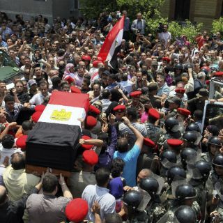 Miles de personas asistieron al funeral y gritaron consignas en las que exigían al mandatario defender la seguridad de Egipto, señaló el diario egipcio Al Ahram.