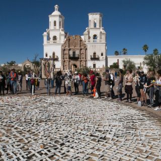 El grupo inició la caminata en la mañana, a las afueras de la Iglesia de San Juan, y terminaron frente de la histórica Misión San Xavier, donde colocaron las cruces en círculo y leyeron los nombres de algunos fallecidos en los últimos 15 años.