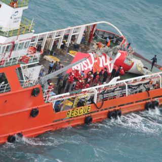 Buzos indonesios subieron a la superficie una de las dos cajas negras del vuelo