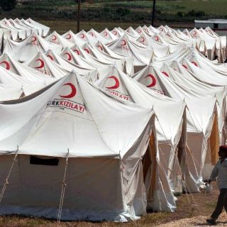 La Media Luna Roja, organización equivalente a la Cruz Roja en los países musulmanes, proporciona tres comidas calientes a esos refugiados en los campamentos, mientras la población turca les ha suministrado ropa y equipos de cocina.