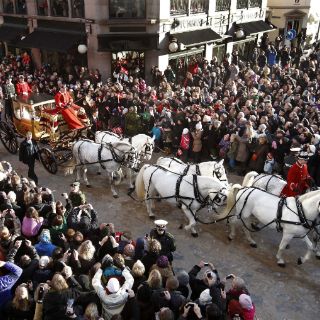 Acompañada de una escolta de húsares montados, la reina se desplazó por calles de Copenhague en una carroza de 1840 tirada por caballos hasta el ayuntamiento, donde fue agasajada con una recepción a la que asistieron integrantes de diversas familias reales europeas.