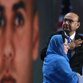 En su discurso, el padre, acompañado de su esposa, Ghazala, reprochó a Trump su idea de prohibir temporalmente la entrada en EU de musulmanes para combatir el terrorismo yihadista y defendió el patriotismo y el sacrificio de su hijo.