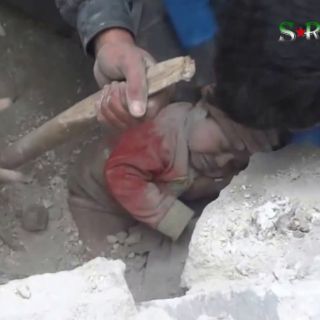 GUADALAJARA, JALISCO (29/ENE/2014).- Una niña de apenas tres años de edad, logró vivir luego de que unos jóvenes logrando escucharla llorar, pues estaba sepultada bajo escombros de un derrumbe provocado por ataques aéreos en Siria.