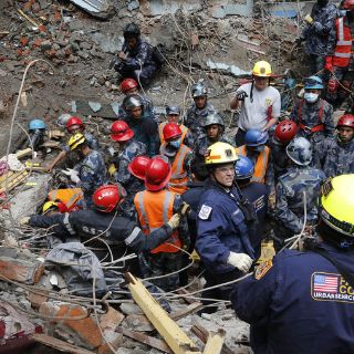 El hombre estaba entre los escombros de un edificio de siete pisos