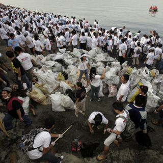 FILIPINAS (25/SEP/2010).- Como parte del Día Internacional de Limpieza de Costas (ICC), filipinos recogen la basura a lo largo de la Bahía de Manila, Filipinas.