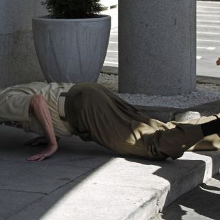 MADRID, ESPAÑA (02/AGO/2012).- El rey Juan Carlos de Borbón sufrió una caída frontal al tropezar con un escalón durante una visita a la sede del Estado Mayor de la Defensa, y aunque se hizo un rozón en la nariz y la barbilla no tuvo mayores consecuencias y continuó su actividad.
