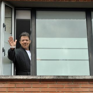 Por primera vez desde la operación, el jefe de Estado asomó por unos minutos a la ventana y saludó a los periodistas que están apostados afuera del centro médico, en el norte de Bogotá.
