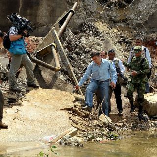 Acompañado de los ministros de Defensa, Juan Carlos Pinzón, y de Transporte, Miguel Peñaloza, así como de autoridades militares y locales, Santos llegó a la capital caqueteña de Florencia y desde allí voló hasta San Vicente del Caguán, donde conoció con los ingenieros militares la situación del puente.