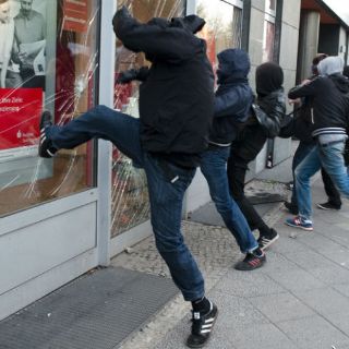 En la protesta revolucionaria de la capital, los participantes lanzaron botellas contra los vehículos policiales, dañaron varios coches y rompieron los cristales de una sucursal bancaria, en línea con lo sucedido en los últimos años.