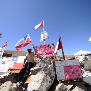 Los familiares de los trabajadores los acompañan desde la superficie en uno de los cerros aledaños a la mina San José