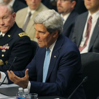 Kerry, el secretario de Defensa Chuck Hagel y el general Martin Dempsey, jefe del Estado Mayor Conjunto, se sentaron juntos en la audiencia de la comisión del Senado, mientras que a unos cientos de kilómetros de distancia, el secretario general de la ONU Ban Ki-moon exhortó a actuar con cautela.
